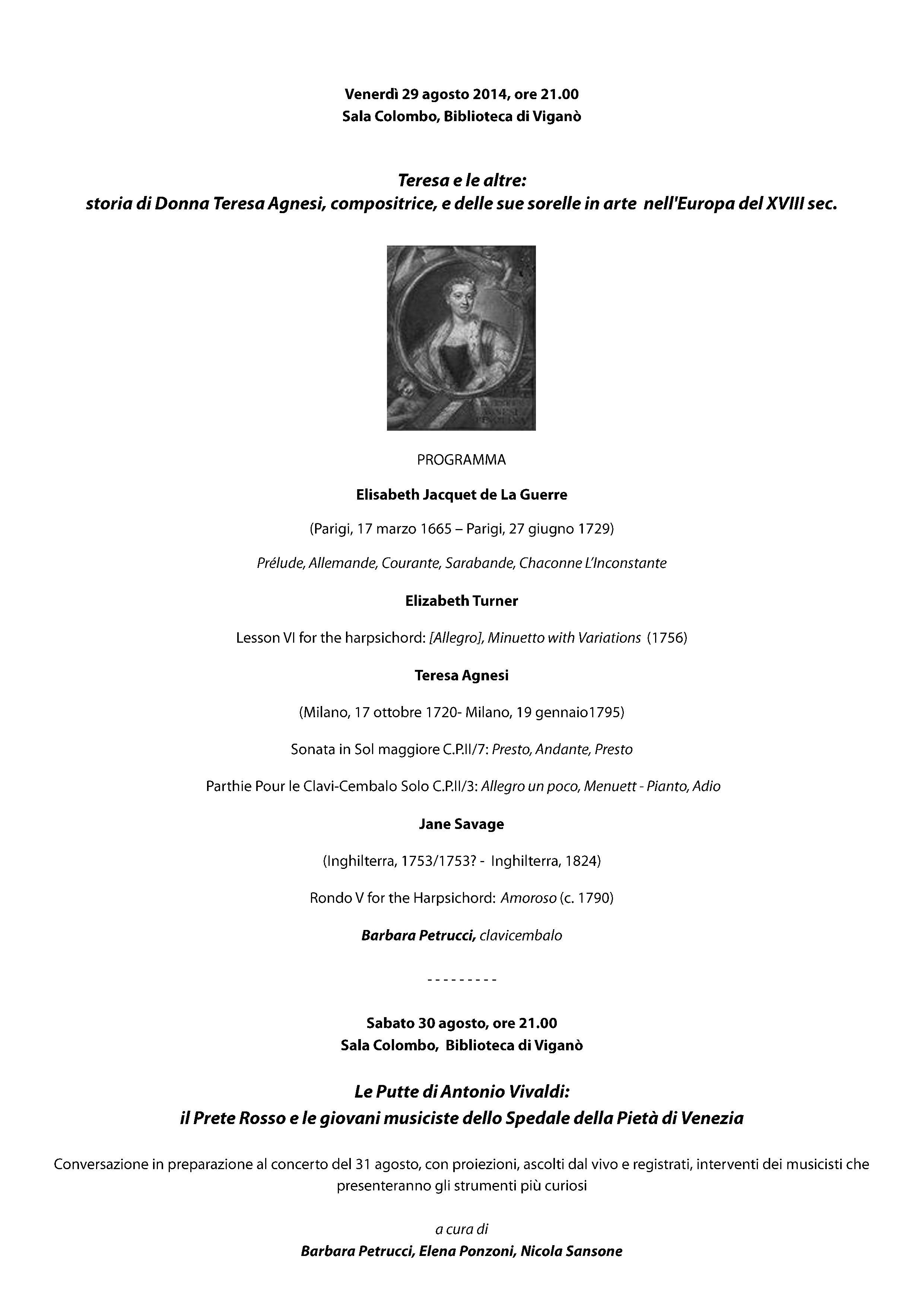 dedicata a Teresa Agnesi e ad altre compositrici coeve, con racconto della vita ed esecuzione di sue composizioni ad opera della clavicembalista e studiosa Barbara Petrucci;